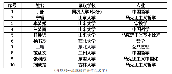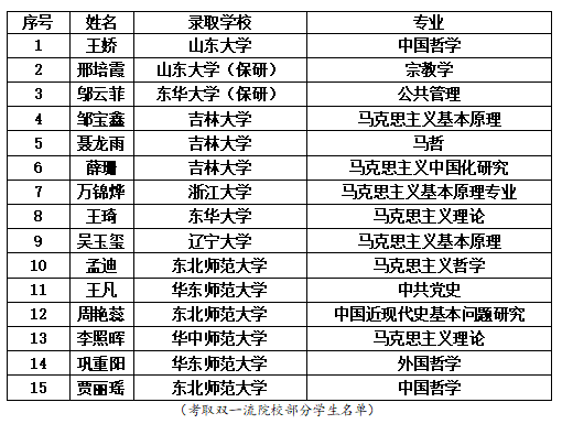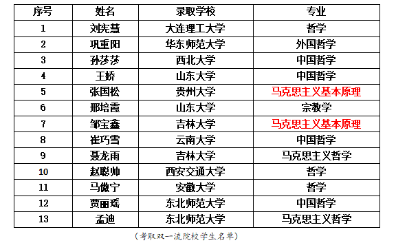 ③通過(guò)統(tǒng)計(jì)數(shù)據(jù)顯示,2014級(jí)畢業(yè)生考研多選擇省外院校,錄取專業(yè)多為馬克思主義理論以及中國(guó)哲學(xué)。