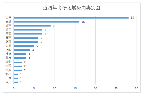在2014級(jí)至2017級(jí)偉德betvlctor體育官網(wǎng)行政管理畢業(yè)生中,選擇山東省內(nèi)高校的同學(xué)居于榜首,其次是東北各地區(qū),總的來(lái)看,選擇北方城市的同學(xué)居于多數(shù)。