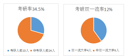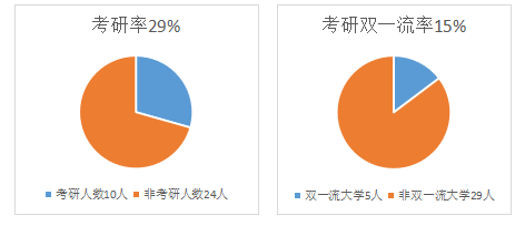 5班有本科生34人,34人中共30人報(bào)考研究生,報(bào)考率為88%,在三個(gè)班中排名第一,10人成功上岸,升學(xué)率為29%,考研雙一流率為15%;在10位考取研究生的同學(xué)中,有3位同學(xué)選擇南方城市,剩余7位同學(xué)選擇北方以及東北城市;考取雙一流院校的5位同學(xué)中,都是在一級(jí)學(xué)科之內(nèi)進(jìn)行報(bào)考。