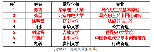 考取雙一流院校的7位同學(xué)中,有2位同學(xué)是在一級(jí)學(xué)科之內(nèi)進(jìn)行報(bào)考。