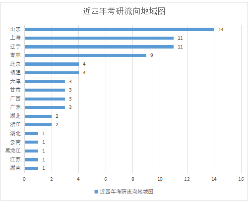 2016級(jí)10位考取研究生的同學(xué)中,有4位同學(xué)選擇南方城市,剩余6位同學(xué)選擇北方以及東北城市;