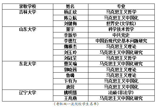 從以上統(tǒng)計(jì)中可以看出,2016級(jí)畢業(yè)生考研多選擇北方城市,極少數(shù)畢業(yè)生選擇南方城市,且專業(yè)選擇多為馬克思主義方向。