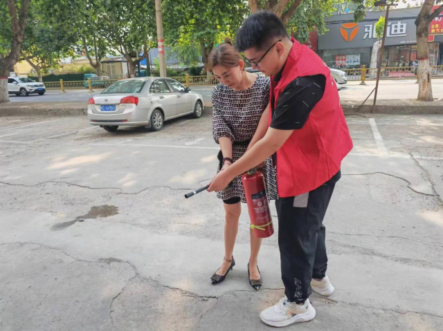 吳斌從夏季安全隱患就在我們身邊講起,結(jié)合典型事例分別介紹樓道、住房等場所存在的安全隱患,強(qiáng)調(diào)只有整體安全意識得到提高,才能有效避免事故發(fā)生。其中吳斌重點(diǎn)圍繞“消防安全四能力”展開講解,向居民介紹檢查和減少火災(zāi)隱患、撲救初起火災(zāi)和組織引導(dǎo)人員疏散逃生的相關(guān)措施,加強(qiáng)消防安全知識的宣傳。同時(shí),吳斌還詳細(xì)介紹滅火器的分類、操作程序及相關(guān)注意事項(xiàng),并在現(xiàn)場向大家演示滅火器的正確使用方法,并逐個(gè)指出在場學(xué)生和居民使用滅火器時(shí)出現(xiàn)的錯(cuò)誤,對其進(jìn)行正確指導(dǎo)。參與者始終保持對消防安全知識學(xué)習(xí)的熱情,返鄉(xiāng)大學(xué)生積極配合社區(qū)工作人員排查樓道安全隱患,參與者馬敬濤表示,這次志愿活動(dòng)讓他更熟練地掌握滅火器的使用方法,學(xué)到很多有用的消防知識。