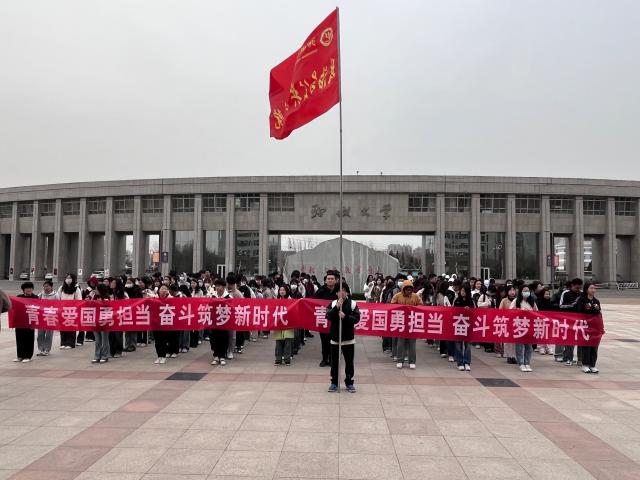 3月19日,我院于西校區(qū)十一廣場舉辦“青春愛國勇?lián)?,奮斗筑夢新時代”主題升旗儀式。偉德betvlctor體育官網(wǎng)黨委副書記、副院長喬華軍、團委書記于進、輔導員徐盛楠、輔導員劉紫瑋以及2023級全體學生、2022級部分學生參加此次升旗儀式。