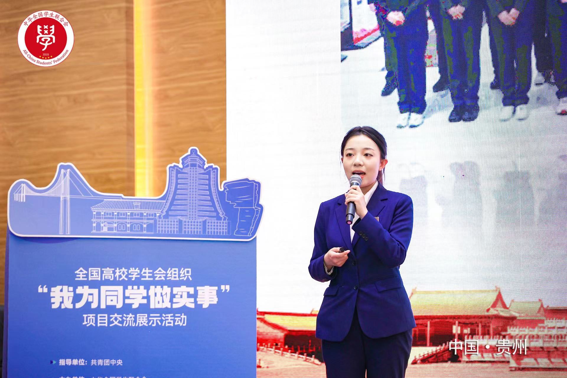 本屆“我為同學(xué)做實(shí)事”項(xiàng)目交流展示活動(dòng)是在共青團(tuán)中央指導(dǎo)下,由全國(guó)學(xué)聯(lián)主辦、貴州省學(xué)聯(lián)承辦。項(xiàng)目交流展示活動(dòng)自啟動(dòng)以來(lái),經(jīng)學(xué)校推薦、省級(jí)推報(bào)、全國(guó)初選,我院“行走的青年思政課”——用“青言青語(yǔ)”講好黨的創(chuàng)新理論項(xiàng)目在層層選拔后,從1724所高校的3581個(gè)項(xiàng)目中脫穎而出,進(jìn)入線下交流展示環(huán)節(jié)。
