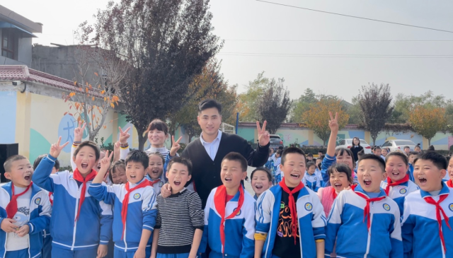 ?。▌⑿掠钆c團隊成員一起到山區(qū)學(xué)校)