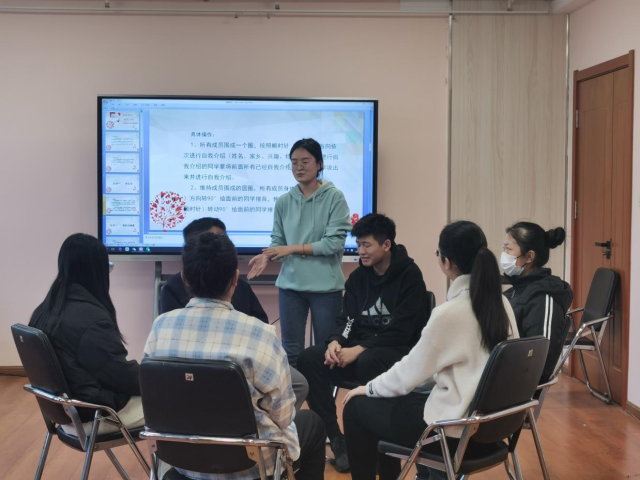 主持人郭洋靜介紹此次活動(dòng)的主題為心靈成長(zhǎng)與悅納自我,圍繞“串名字”、“我的自畫像”、“多元排隊(duì)”、“松鼠和大樹”、“看我走過來”五個(gè)環(huán)節(jié)展開。在“我的自畫像”游戲環(huán)節(jié),大學(xué)生心理朋輩輔導(dǎo)員分成兩組進(jìn)行游戲,通過繪畫自畫像的方式認(rèn)識(shí)自我,創(chuàng)作完自畫像后,兩組成員互相猜測(cè)對(duì)方成員的自畫像,引導(dǎo)大學(xué)生心理朋輩輔導(dǎo)員們對(duì)自我有了一個(gè)清晰的認(rèn)識(shí)。在“多元排隊(duì)”游戲環(huán)節(jié)中,郭洋靜分發(fā)不同的關(guān)鍵詞,大學(xué)生心理朋輩輔導(dǎo)員們根據(jù)關(guān)鍵詞找到對(duì)應(yīng)的隊(duì)伍,在此過程中不能交流,充分考驗(yàn)大家的默契程度,增強(qiáng)彼此之間的情感聯(lián)系。通過“松鼠和大樹”游戲環(huán)節(jié),大學(xué)生心理朋輩輔導(dǎo)員們彼此熟絡(luò),相互配合,增強(qiáng)團(tuán)隊(duì)協(xié)作能力?;顒?dòng)最后,郭洋靜鼓勵(lì)大學(xué)生心理朋輩輔導(dǎo)員認(rèn)識(shí)自我,自信交流,與大家一起共同進(jìn)步。參與者王新慧表示,通過此次團(tuán)體輔導(dǎo)活動(dòng),對(duì)大學(xué)生心理朋輩輔導(dǎo)員群體有了更加深入的了解,也增強(qiáng)自己的團(tuán)隊(duì)協(xié)作意識(shí)與溝通能力。