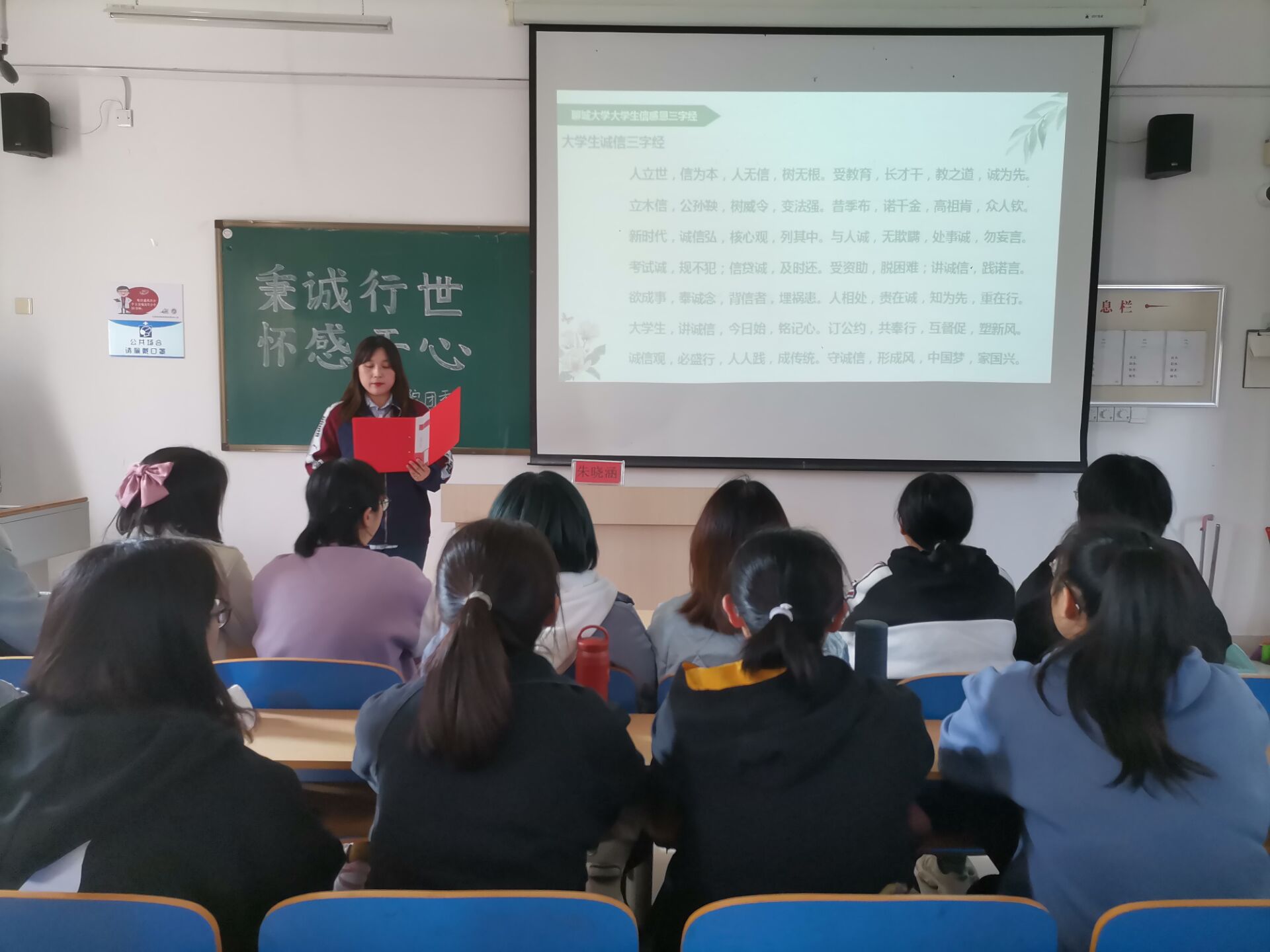 為貫徹落實(shí)習(xí)近平新時(shí)代中國(guó)特色社會(huì)主義思想,加強(qiáng)大學(xué)生感恩誠(chéng)信教育,引導(dǎo)同學(xué)們樹(shù)立知恩圖報(bào)、言行一致的正確價(jià)值觀,11月21日,偉德betvlctor體育官網(wǎng)于東校區(qū)6#A201舉辦"秉誠(chéng)行世,懷感于心"活動(dòng),偉德betvlctor體育官網(wǎng)輔導(dǎo)員朱曉涵擔(dān)任領(lǐng)讀員。