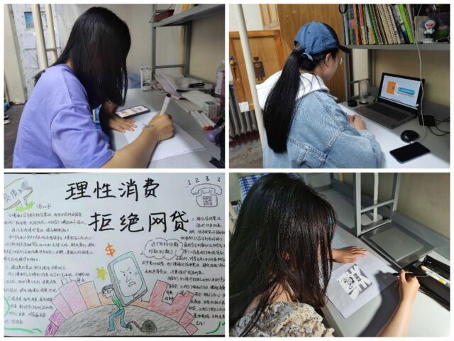 莫畫(huà)“網(wǎng)”為牢,莫“貸”一生愁。在平面作品設(shè)計(jì)比賽中,同學(xué)們以“拒絕不良校園貸”為主題進(jìn)行創(chuàng)作,參賽者們認(rèn)真構(gòu)圖,用畫(huà)筆展現(xiàn)對(duì)校園貸的警惕之情,用圖片抒發(fā)自己的情感。同學(xué)們的作品都結(jié)合具體案例,以小見(jiàn)大,見(jiàn)微知著,作品形式多樣,新穎別致,充分展示自己的藝術(shù)直覺(jué),胡玉麗采用漫畫(huà)的形式,用生動(dòng)夸張的方式體現(xiàn)校園貸的惡劣后果,直接體現(xiàn)作者內(nèi)心的真實(shí)想法;王臨風(fēng)則采用手抄報(bào)的方式,用清晰的排版、圖文并茂的表達(dá)給人以視覺(jué)沖擊;以及程蓮坤采用海報(bào)形式,富有極強(qiáng)的感染力。每個(gè)作品都蘊(yùn)涵著參賽者個(gè)人對(duì)校園貸的不滿,表達(dá)出希望大學(xué)生遠(yuǎn)離校園貸、減少超前消費(fèi)、促進(jìn)生活美好的祝愿?;顒?dòng)負(fù)責(zé)人對(duì)優(yōu)秀作品進(jìn)行表?yè)P(yáng),鼓勵(lì)同學(xué)們遠(yuǎn)離消費(fèi)貸款陷阱,樹(shù)立正確消費(fèi)觀。