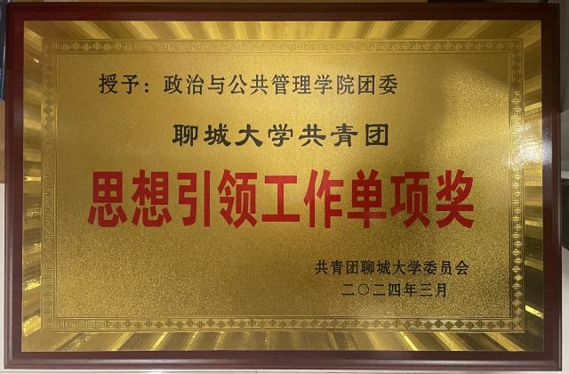 聊城大學(xué)共青團思想引領(lǐng)工作單項獎