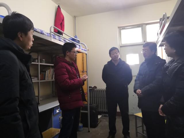 來到學(xué)生宿舍,莊波親切的詢問了同學(xué)們冬季御寒物品的置辦情況,叮囑他們一定要注意防寒保暖,教育他們要互相幫助,共同提高。唐明貴提醒同學(xué)們要與父母、老師等隨時(shí)保持聯(lián)系,做好防寒保暖,為自己的生命財(cái)產(chǎn)安全負(fù)責(zé)。季昌偉深入了解了同學(xué)們的勤工助學(xué)情況,提醒他們要?jiǎng)谝萁Y(jié)合,調(diào)整好作息時(shí)間。宋義明和程德香也對(duì)同學(xué)們的生活、學(xué)習(xí)等方面進(jìn)行了積極交流,勉勵(lì)他們在平凡的崗位中創(chuàng)造不平凡的成績,讓自己的大學(xué)生活變得更加充實(shí)與多彩。同學(xué)們紛紛表示非常感謝學(xué)院的關(guān)懷,并保證不辜負(fù)學(xué)院領(lǐng)導(dǎo)和老師的期望,認(rèn)真工作,嚴(yán)格遵守學(xué)校和單位的規(guī)章制度,重視自身安全,讓家長和老師放心。