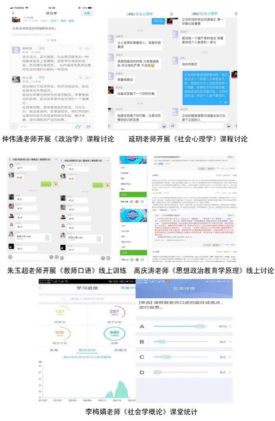 偉德betvlctor體育官網(wǎng)的老師們也是十分給力,紛紛使出渾身解數(shù),與同學(xué)們“云端”相聚,引領(lǐng)學(xué)生“學(xué)?!卞塾危Ρ?罩姓n堂的授課質(zhì)量。學(xué)院山東省高等學(xué)校在線開放課程平臺(tái)上線課程《社會(huì)學(xué)概論》的授課教師李梅娟,通過智慧樹網(wǎng)絡(luò)平臺(tái),提前上傳課件,電子書等學(xué)習(xí)資源,并在正式上課時(shí)間通過智慧樹網(wǎng)絡(luò)平臺(tái)開啟見面課,進(jìn)行網(wǎng)絡(luò)直播授課。并利用平臺(tái)提供的投票、頭腦風(fēng)暴等工具,讓學(xué)生充分參與課堂,通過“優(yōu)質(zhì)課+直播+在線討論”的方式,實(shí)踐著“停課不停教、停課不停學(xué)”。李德芳老師則是采用“雨課堂”課件推送+騰訊會(huì)議直播的形式,保障學(xué)生們既能看到學(xué)習(xí)資料,又能身臨其境聽到老師的講解,結(jié)合平臺(tái)提供的搶答、討論等功能,充分實(shí)現(xiàn)了教與學(xué)的互動(dòng)。還有的老師采用“直播+錄播”、“優(yōu)質(zhì)課+在線討論”相結(jié)合等方式,開展網(wǎng)絡(luò)授課,切實(shí)保障課堂的參與度和實(shí)效性。在這個(gè)過程中,老師們也都突破了重重困難,get到不少的新技能:學(xué)習(xí)信息化教學(xué)工具的用法、接觸從未用過的“錄屏軟件”、建立資料完備的網(wǎng)絡(luò)課堂……在老師們學(xué)習(xí)與探索的背后,盡是對(duì)學(xué)生的關(guān)心與關(guān)愛。