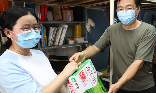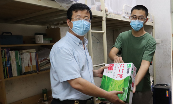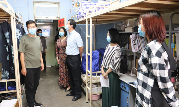 為進一步了解返校學生的生活住宿情況,更好地落實各項返校復學工作,5月23日,偉德betvlctor體育官網(wǎng)黨總支書記莊波,院長唐明貴,黨總支副書記、副院長季昌偉,副院長劉子平、于學強,副處級組織員陳新,辦公室主任蔡連捷,團委書記宋義明以及輔導員許娜等領(lǐng)導老師走訪學生宿舍,看望慰問返校學生,并為他們送去慰問品。