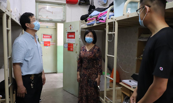 走訪中,學院領(lǐng)導與學生親切交流,細致詢問他們的工作與生活情況,提醒同學們在寢室要保持室內(nèi)通風,在校園內(nèi)要佩戴好口罩,做到不聚集、不串宿,做好每日消毒清潔。同時叮囑同學們嚴格遵守疫情期間學校的防控管理規(guī)定,保持高度的防護意識,做好每日早、中、晚的體溫記錄,如感到不適或遇到問題要及時與老師溝通。