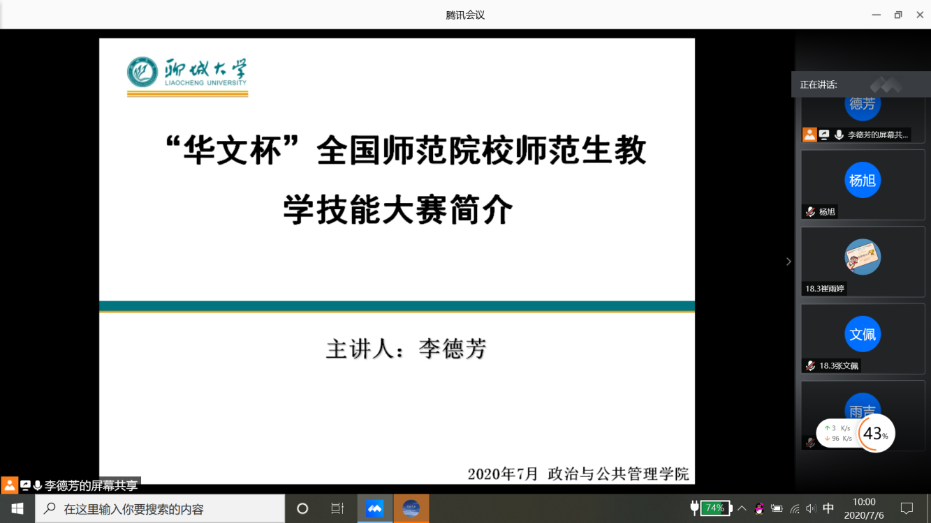 為幫助師范生了解“華文杯”比賽要求,提高師范生的教學技能,積累相關(guān)教學經(jīng)驗,做好賽前準備工作,76日,偉德betvlctor體育官網(wǎng)于線上舉辦歷練技能,決勝華文宣講會,偉德betvlctor體育官網(wǎng)副教授李德芳擔任主講人,思想政治專業(yè)全體參賽學生參與會議。