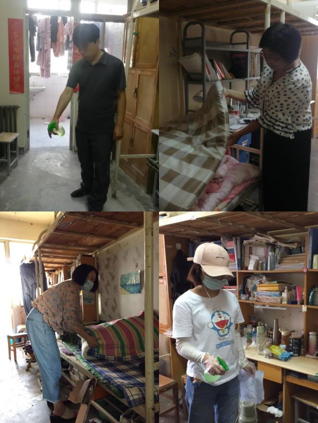 本次學(xué)生宿舍通風(fēng)除濕消殺工作主要是對學(xué)生宿舍進行全面消毒和檢查,確保宿舍環(huán)境的安全衛(wèi)生。老師們秉持“認真負責(zé),一絲不茍”的態(tài)度,認真落實學(xué)校關(guān)于開展學(xué)生宿舍通風(fēng)除濕消殺工作的要求,分工合作,高效推進學(xué)生宿舍清潔工作。受疫情影響,宿舍長期處于封閉狀態(tài),加之夏季炎熱多雨,極易出現(xiàn)物品潮濕發(fā)霉現(xiàn)象,老師們仔細檢查了宿舍內(nèi)被褥潮濕或發(fā)霉情況,對發(fā)霉腐爛物品妥善處置,確保宿舍環(huán)境干凈清潔,并進行開窗通風(fēng)。老師們對宿舍內(nèi)水、電等方面進行排查,及時處理了檢查過程中發(fā)現(xiàn)的安全隱患問題。考慮到部分同學(xué)將貴重物品長期存放于宿舍,在獲得相關(guān)同學(xué)許可后,老師們對宿舍內(nèi)電腦等貴重物品的安全情況進行檢查。最后對學(xué)生宿舍進行通風(fēng),保持室內(nèi)空氣流通與干燥,并對宿舍開展消毒殺菌工作,防止病毒傳播。