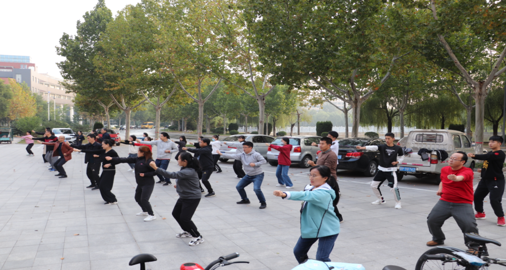 為增強教工,對抗新冠肺炎疫情,服務教學科研工作,1015日,偉德betvlctor體育官網分工會組織,全體教工與部分學生參加的“八段錦”培訓活動,在馬克思主義廣場拉開帷幕。我院特邀聊城大學后備軍官學院教師、全國武術冠軍吳俊美老師,作為本次培訓的教練。
