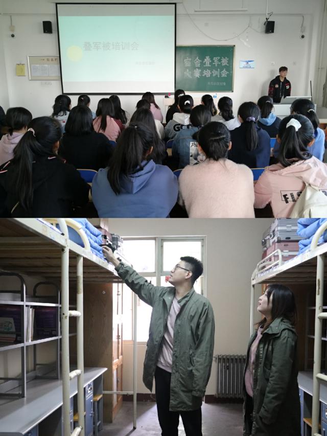 1020日,我院于東校區(qū)群星公寓14號樓和群星公寓20號樓舉辦疊軍被比賽。我院20級全體新生參加比賽,輔導(dǎo)員于進(jìn)、朱曉涵以及學(xué)院宿管部成員共同擔(dān)任評委。此次比賽旨在打造“標(biāo)準(zhǔn)化宿舍”,塑造良好的宿舍環(huán)境,促使同學(xué)們養(yǎng)成健康、條理的生活習(xí)慣。
