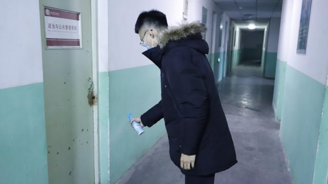 全面消殺迎九冬,筑牢疫情防護墻。由黨員、預備黨員、入黨積極分子組成的消殺工作組在對應時間段內(nèi)依次對分配的宿舍進行消殺工作,配好含氯消毒液和乙酸消毒液后,采用低容量噴霧器空間噴灑消毒方式對宿舍進行消毒。在消殺過程中,在做好自身防護措施的前提下,消殺人員嚴格按照衛(wèi)生消毒管理的標準規(guī)范,關閉門窗,手握噴壺,按照先上后下、先左后右的方法進行滯留噴灑和霧狀噴灑,對各個寢室逐一進行了全面細致的消殺作業(yè),確保處處到位,防止遺漏,使每一角落都得到了有效的衛(wèi)生消殺,以達到殺滅病原體、切斷傳播途徑的效果。在工作人員進行消殺工作時,學生積極進行配合,給工作人員留出足夠的消殺空間,使得本次消殺活動順利快速進行。
