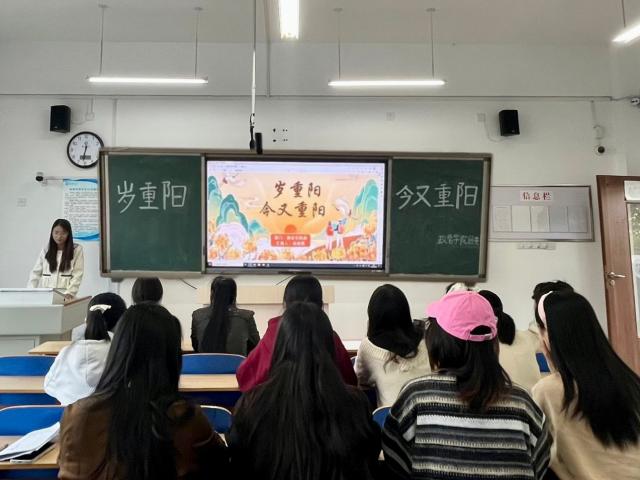 活動負(fù)責(zé)人趙新悅介紹重陽節(jié)的來源,通過視頻讓同學(xué)們對于重陽節(jié)的產(chǎn)生有了大致了解。隨后,趙新悅從重陽節(jié)的歷史淵源、文化內(nèi)涵、社會意義三個方面進(jìn)行介紹,讓同學(xué)們對重陽節(jié)有了更加深入的認(rèn)識。趙新悅以視頻與文字相結(jié)合的方式著重介紹曬秋、登高、祭祖等重陽節(jié)的習(xí)俗,并通過分享有關(guān)于重陽節(jié)的詩詞和列舉魯迅、周恩來、毛澤東等孝老愛親的典范故事,讓同學(xué)們了解到重陽節(jié)背后所蘊(yùn)含的現(xiàn)實(shí)價值和意義?;顒悠陂g,參與者通過分享有關(guān)重陽節(jié)的詩詞,陶冶情操,提升文學(xué)素養(yǎng),在“你畫我猜”小游戲中,同學(xué)們積極參與,不僅拉近了與參與者的距離,調(diào)節(jié)課堂氛圍,而且鍛煉同學(xué)們的思維能力,增強(qiáng)知識記憶效果?;顒訁⑴c者許文慧表示,重陽節(jié)作為中國傳統(tǒng)節(jié)日之一,具有深遠(yuǎn)的歷史和文化內(nèi)涵,不僅是一個親情交流的時刻,更是一種弘揚(yáng)中華傳統(tǒng)文化、傳承民族精神的重要方式。