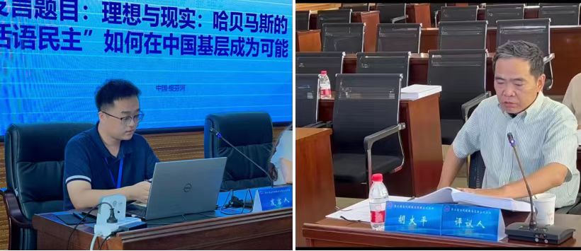4日上午,梁桂杉在第五分論壇“對早期西方馬克思主義和法蘭克福學派的新闡釋”作了題為《理想與現(xiàn)實:哈貝馬斯的話語民主如何在中國基層成為可能?》的主題發(fā)言。該同學在發(fā)言中指出,哈貝馬斯所建構的話語民主雖然是理論性構想,但通過梳理這種民主范式的核心內涵,發(fā)現(xiàn)現(xiàn)實社會確實具備“話語民主”付諸實施的要素。因此,哈貝馬斯的話語民主理論并不是幻想,而是可能實現(xiàn)的理想,同時也在一定程度上能夠為我國基層協(xié)商民主機制的完善提供必要借鑒經驗。南京大學馬克思主義學院院長胡大平教授隨后對梁桂杉所作的發(fā)言進行了評議。胡大平教授對文章的問題意識與創(chuàng)新性思考進行肯定,同時也闡明了文章的不足之處,并提出幾點建設性修改意見。