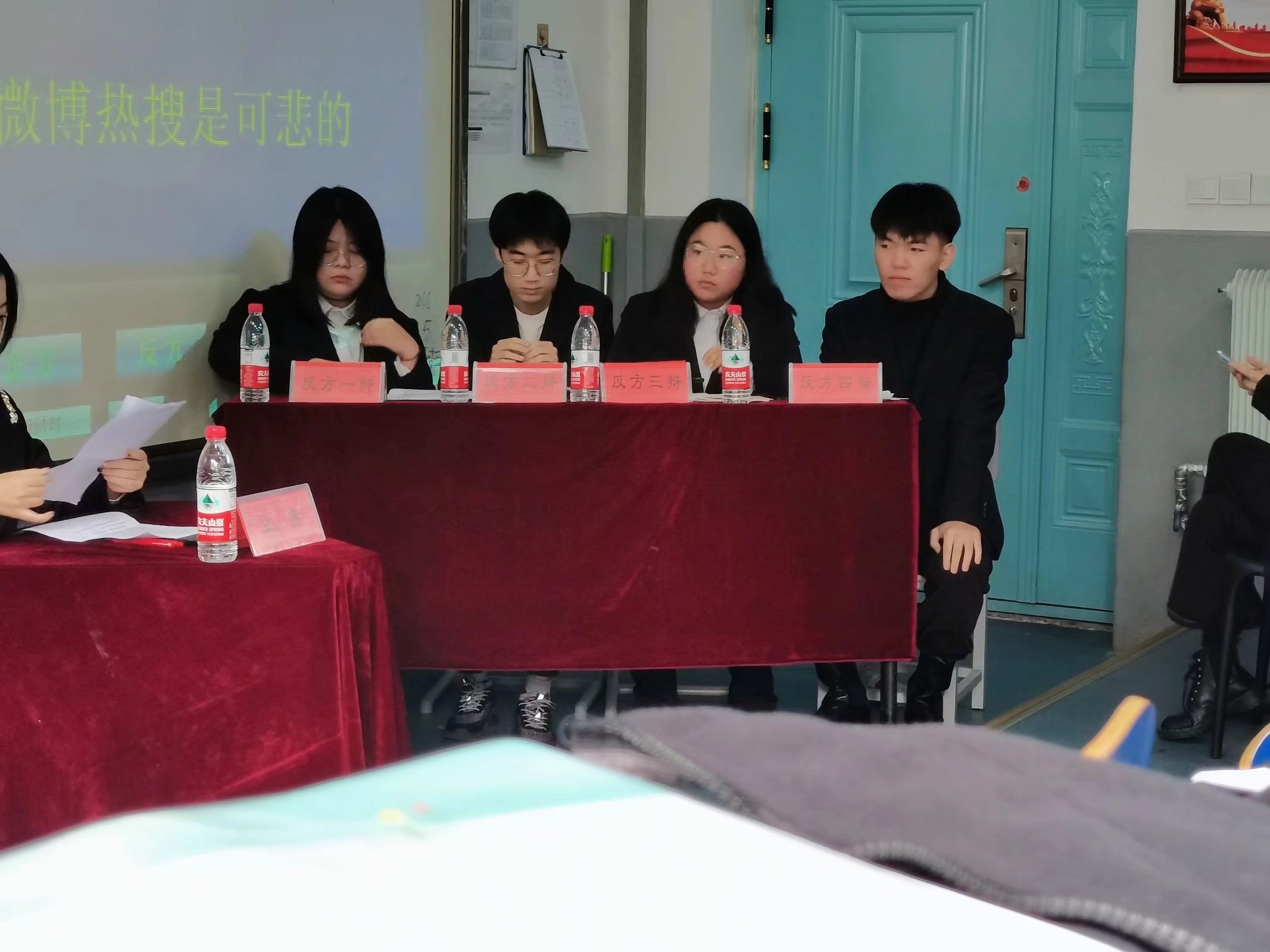 此次辯論賽以“全民關(guān)注微博是可喜的還是可悲的”為辯題。正方法學(xué)院持“全民關(guān)注微博是可喜的”的觀點(diǎn),主張微博為人們獲取信息提供了便利的工具,使人們能夠第一時間獲取知識;反方我院的立場是“全民關(guān)注微博是可悲的”,他們認(rèn)為全民關(guān)注微博過分娛樂化,不關(guān)心國事和社會,是可悲的。在正反兩方充滿理性的立論陳詞后,比賽進(jìn)入對辯和質(zhì)詢階段,反方四辯對正方一辯的陳詞做出質(zhì)詢,正方一辯冷靜分析,沉著應(yīng)對;面對正方四辯的質(zhì)詢,反方一辯另辟蹊徑,以離婚條例中的冷靜期該不該寫入法律為例,引起共情。雙方選手在前兩個環(huán)節(jié)中思路清晰,字字珠璣,你來我往,現(xiàn)場的氛圍迅速升溫。在精彩的自由辯論環(huán)節(jié),雙方辯手就辯題展開了更深層次的辯論,他們仔細(xì)聆聽對方發(fā)言,從中尋找漏洞,主動出擊,同時又迅速反應(yīng),維護(hù)自身觀點(diǎn),將辯論賽帶入高潮。在雙方總結(jié)陳詞后,評委就本次辯題對雙方的表現(xiàn)做出了精彩點(diǎn)評,最后,經(jīng)過評委及大眾評審的綜合打分,我院博思明辯辯論隊(duì)獲得“聊大杯”第三屆青年辯論賽一等獎,第二辯手姜瑞晟獲得“最佳辯手”稱號。