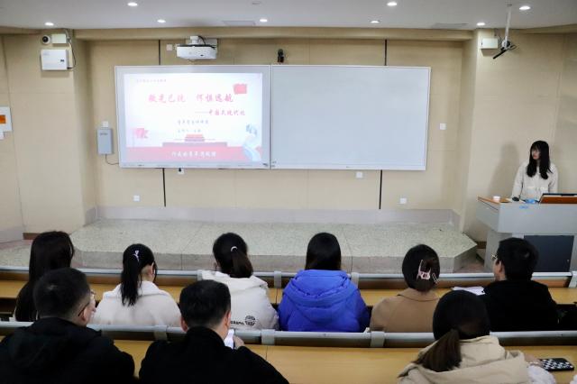 3月2日,聊城大學(xué)青年學(xué)生講師團(tuán)應(yīng)邀赴數(shù)學(xué)科學(xué)學(xué)院帶領(lǐng)團(tuán)支部深入學(xué)習(xí)中國(guó)式現(xiàn)代化,青年學(xué)生講師團(tuán)成員王靜擔(dān)任主講人。王靜以“中國(guó)式現(xiàn)代化——中國(guó)人民基于文明自覺的正確選擇”為主題,明確中國(guó)共產(chǎn)黨的中心任務(wù)就是以中國(guó)式現(xiàn)代化全面推進(jìn)中華民族偉大復(fù)興,她圍繞偉大征程的含義及歷程和現(xiàn)代化的五大特征進(jìn)行講解,讓同學(xué)們感悟中國(guó)式現(xiàn)代化在推進(jìn)社會(huì)革命歷程的重要意義。在宣講中,主講人指出“中國(guó)式現(xiàn)代化”是中國(guó)共產(chǎn)黨領(lǐng)導(dǎo)的社會(huì)主義現(xiàn)代化,既有各國(guó)現(xiàn)代化的共同特征,更有基于自己國(guó)情的中國(guó)特色。針對(duì)中國(guó)式現(xiàn)代化“新”在哪些方面,王靜從人口規(guī)模巨大的現(xiàn)代化、全體人民共同富裕的現(xiàn)代化、物質(zhì)文明和精神文明相協(xié)調(diào)的現(xiàn)代化、人與自然和諧共生的現(xiàn)代化和走和平發(fā)展道路的現(xiàn)代化五個(gè)方面進(jìn)行詳細(xì)講解,并強(qiáng)調(diào)中國(guó)式現(xiàn)代化五大重要原則,同學(xué)們紛紛表示收獲頗豐。主講人以習(xí)近平總書記寄語(yǔ)與我們共勉,明確中國(guó)式現(xiàn)代化是人民的選擇,與我們這一代青年人密切相關(guān),唯有敢擔(dān)當(dāng)作為,堅(jiān)定理想信念,才可以不忘初心,做有為青年。
