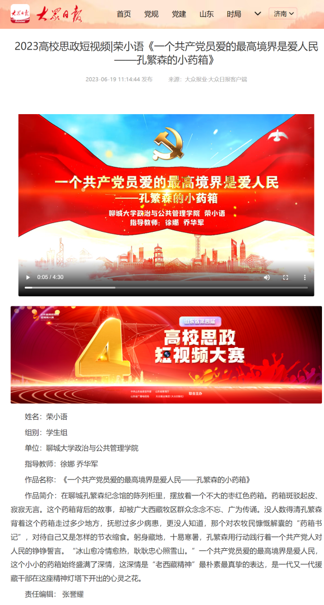 【大眾日報】 2023高校思政短視頻|榮小語《一個共產(chǎn)黨員愛的最高境界是愛人民——孔繁森的小藥箱》