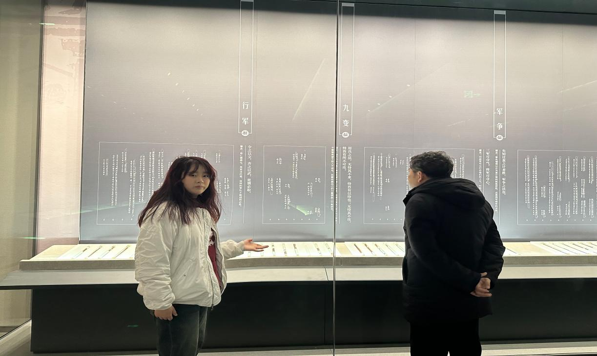 活動負(fù)責(zé)人孫悅與銀雀山漢墓竹簡博物館的工作人員進(jìn)行協(xié)商交流,引導(dǎo)參與者有序進(jìn)入銀雀山漢墓竹簡博物館。孫悅在大廳介紹此次活動流程,包括欣賞漢墓竹簡文化遺址與真跡、講解歷史淵源講解和歷史文化重現(xiàn)等三部分。工作人員帶領(lǐng)參與者進(jìn)入第一展區(qū),欣賞60年代臨沂專業(yè)考古人士對漢墓所挖掘的坑位,該坑位出土較多的是漢代竹簡,最為出名的便是《孫子兵法》。此外,館內(nèi)還珍藏古錢幣、銅器、碑帖、玉器、瓷器、印章等各類珍貴文物。孫悅為參與者詳細(xì)介紹《孫子兵法》的大致內(nèi)容、歷史背景、作者簡介等。參與者與孫悅積極交流互動,嘗試?yán)肰R還原歷史情境,感悟三國與漢代文化的博大精深。孫悅提問有關(guān)竹簡的問題,參與者們互相討論學(xué)習(xí),踴躍回答問題。張潤文表示,此次活動的舉辦,讓她深刻領(lǐng)略到瑯琊文化的風(fēng)采以及底蘊(yùn),并將繼續(xù)深入了解瑯琊文化,了解它背后的故事。