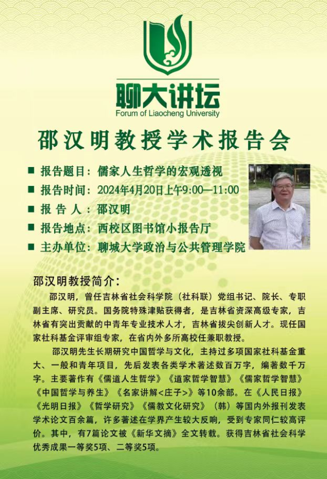 聊大講壇:邵漢明先生講解儒家人生哲學(xué)